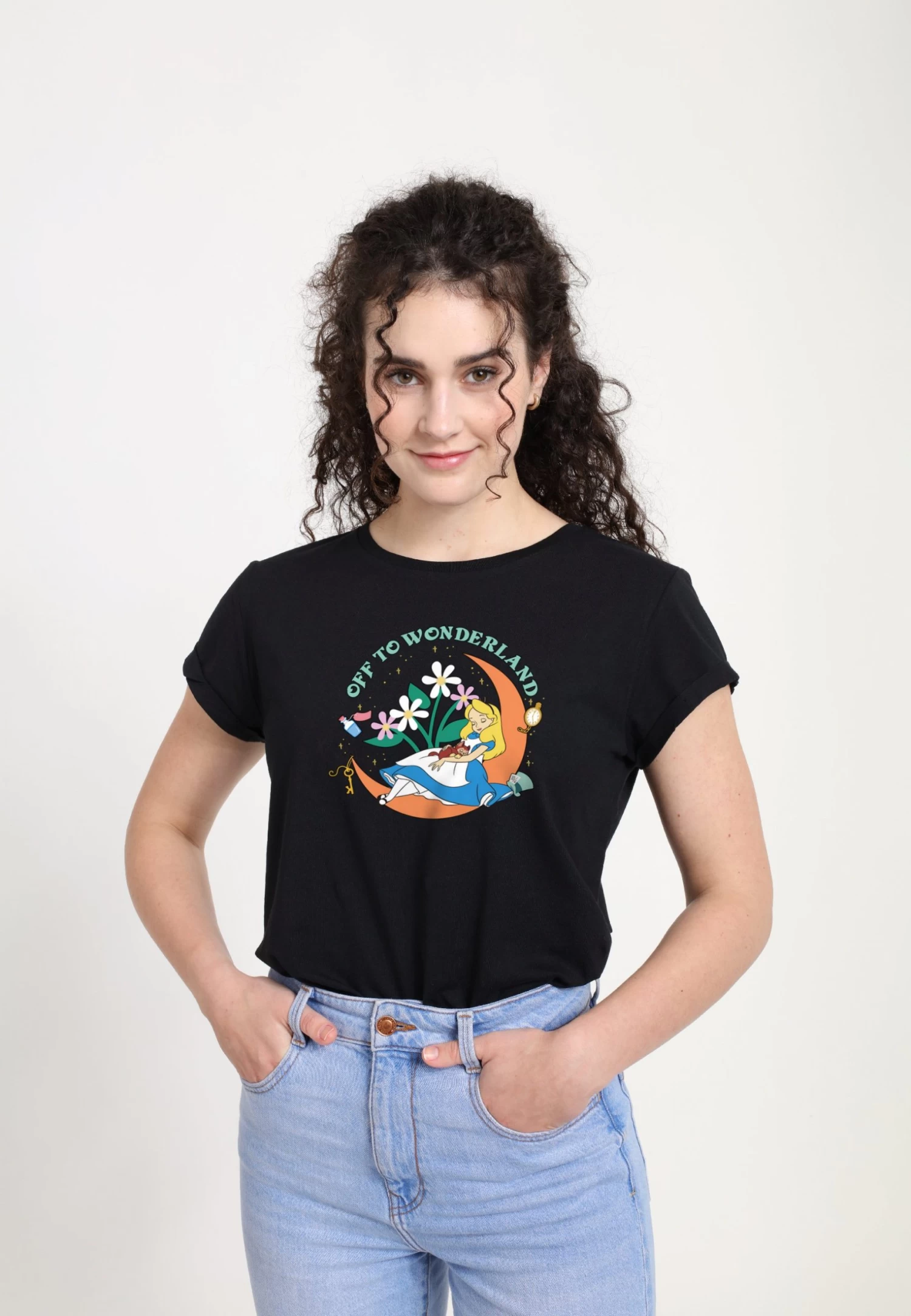 Disney Alice In Wonderland Alice Moon T-Shirt Con StampaBlack Donna T-shirt E Top H3A21DAYS-Q11