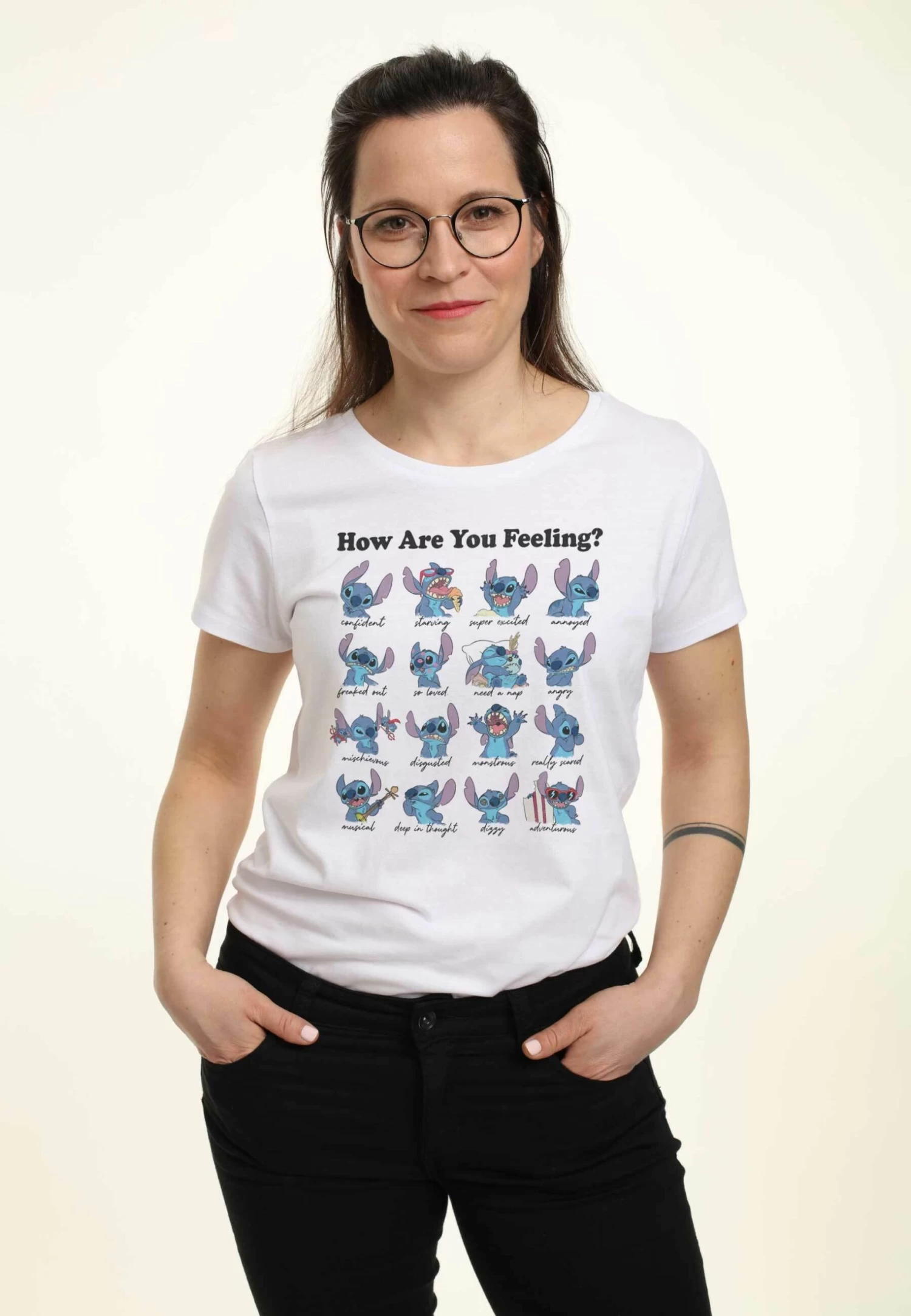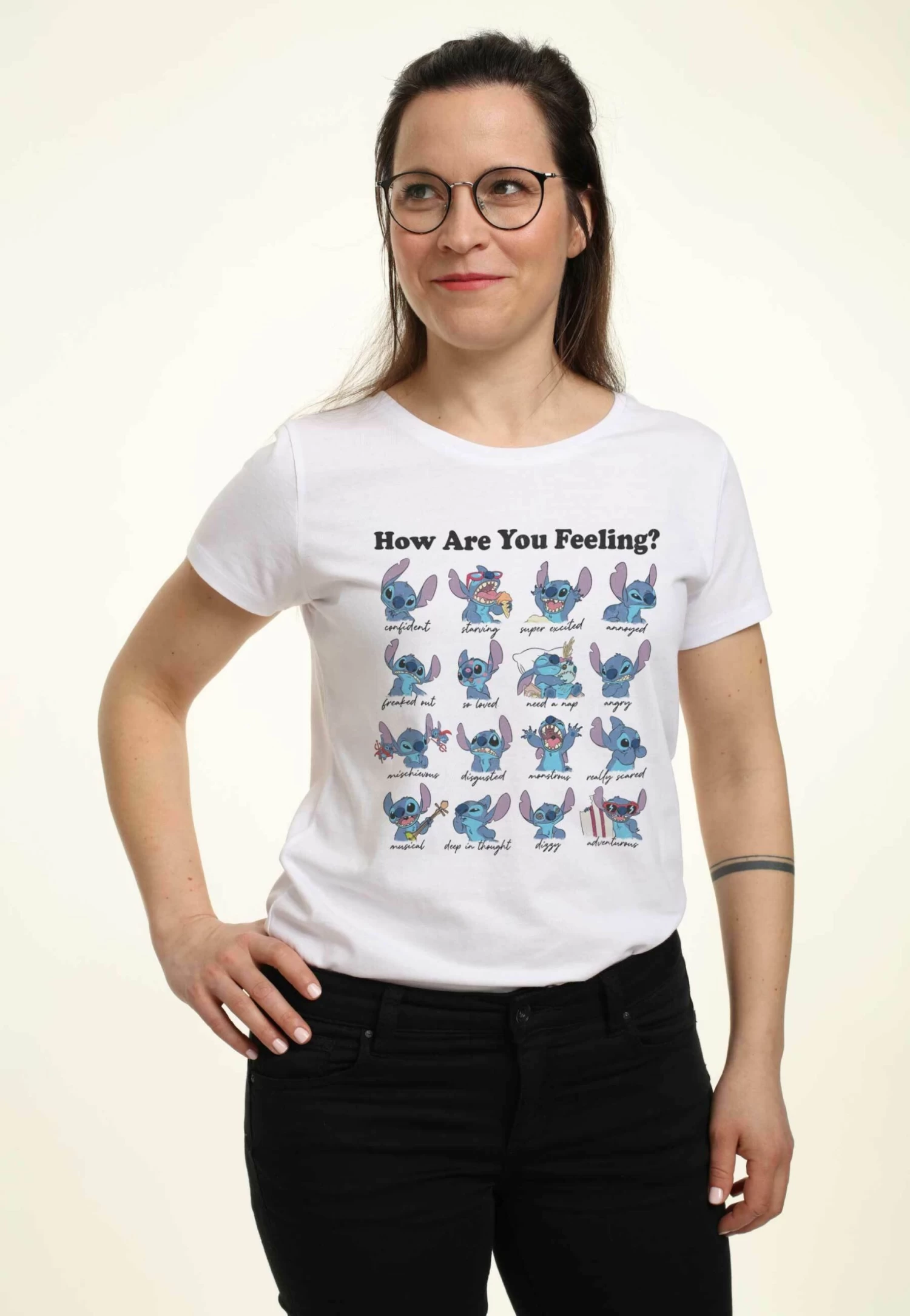 Disney Lilo & Stitch Stitch MoodsT-Shirt Con StampaWhite Donna T-shirt E Top H3A21D3DM-A11