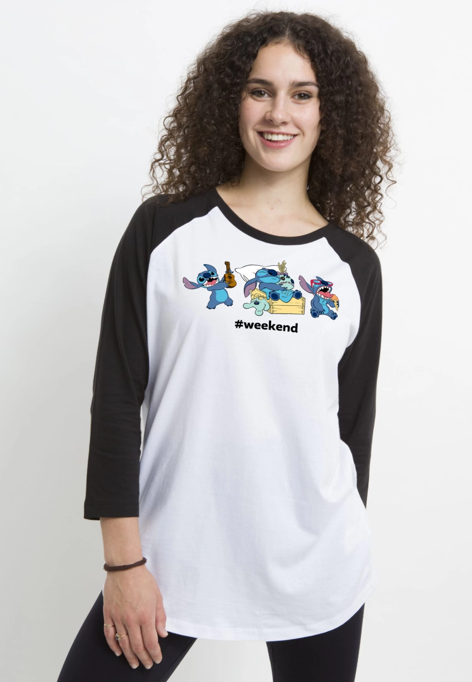 Disney Lilo & Stitch Stitch WeekendMaglietta A Manica LungaWhite Black Donna T-shirt E Top H3A21DBDI-A11