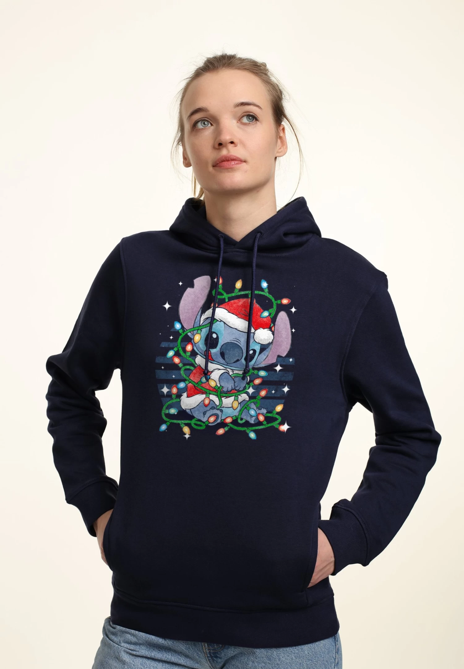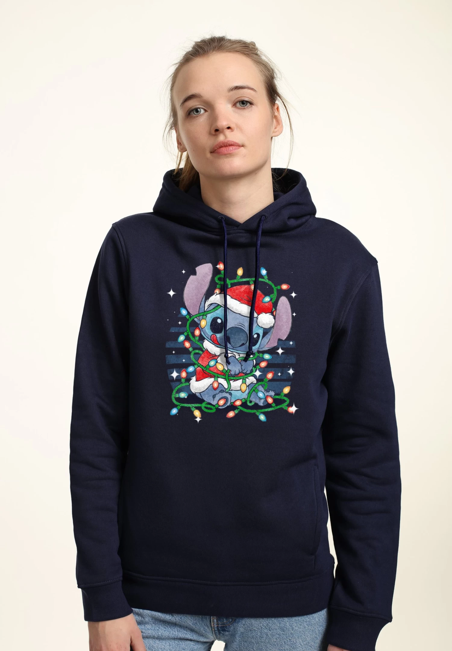 Disney Lilo & Stitch Xmas LightsFelpa Con CappuccioNavy Blue Donna Felpe H3A21J0QD-K11
